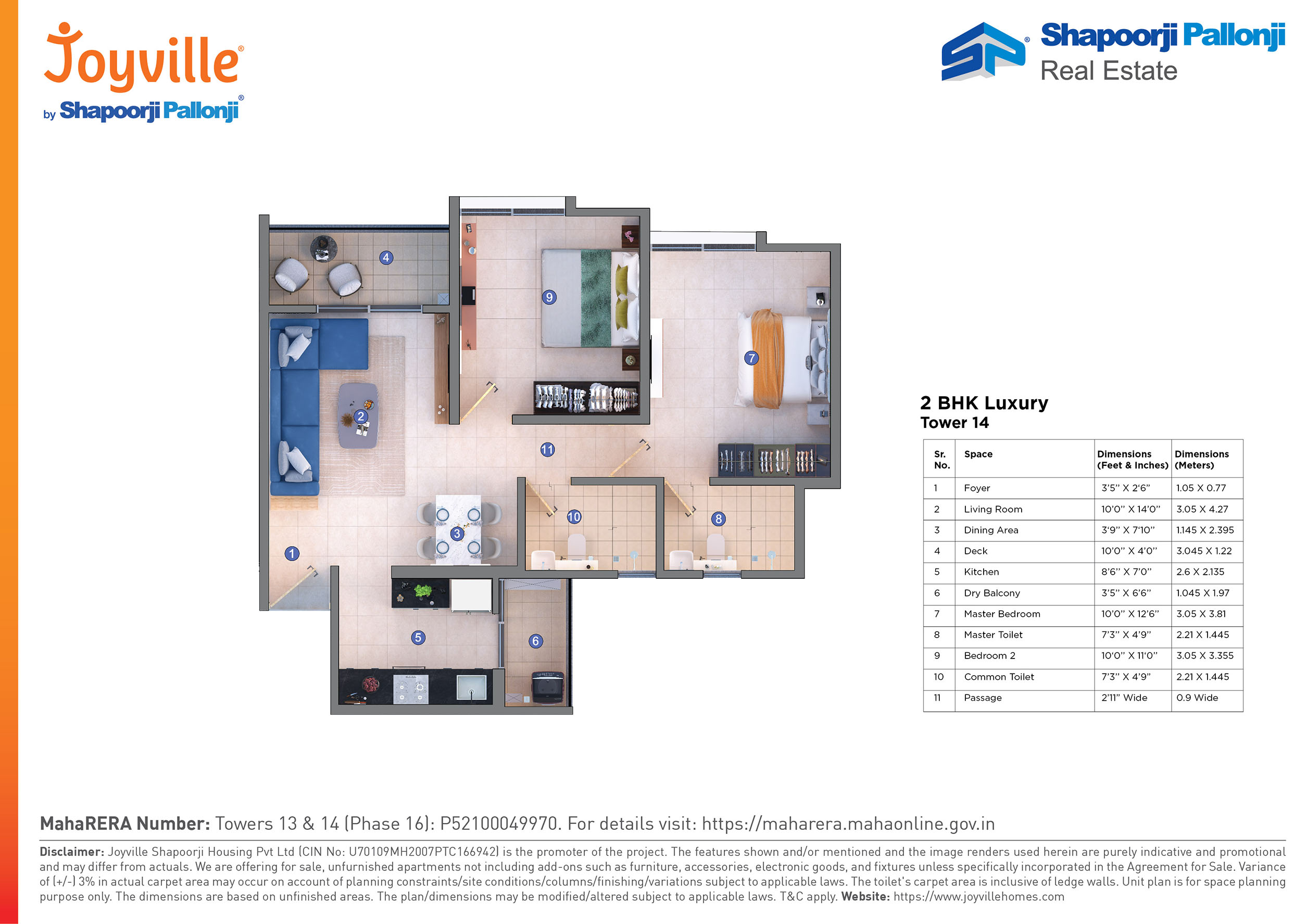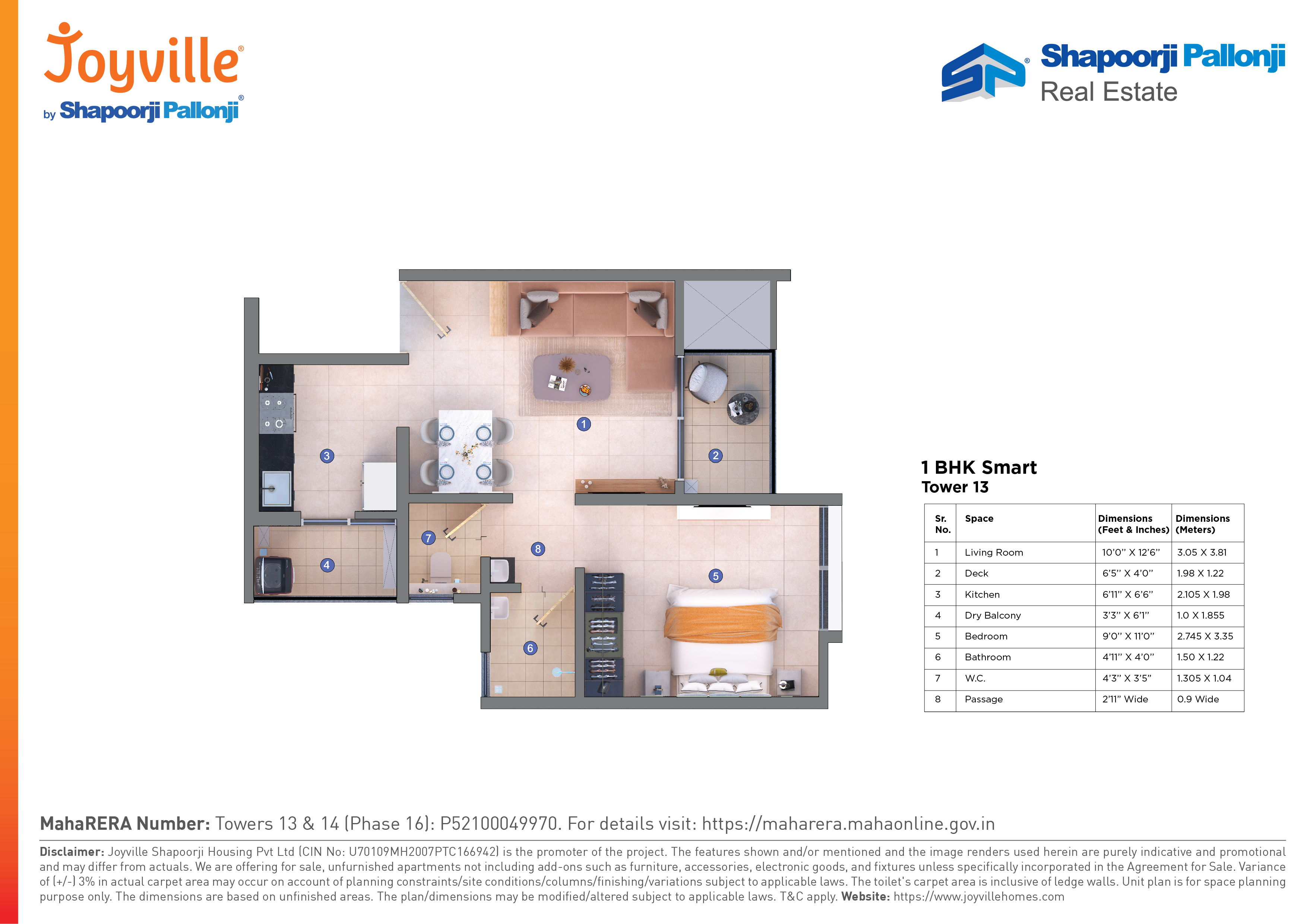 Joyville Shapoorji Housing Pvt. Ltd. (CIN No: U70109MH2007PTC166942) is the promoter of the project (JSHPL) and one of the participants in the larger scheme of development named as ‘SP Kingstown’. ^R77 Lakhs is the price of a 2 BHK Delight Unit No.202 in T7 (Tower Omega). This price is inclusive of the sales consideration value, club charges, GST, stamp duty, registration charges and possession-related charges, but excludes maintenance charges and corpus fund. *The offers are only valid for bookings done during the period of 20th May to 30th June, 2025. To know more about these offers and the applicable terms and conditions, please contact us. T&Cs apply. Website: www.joyvillehomes.com